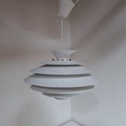 1 stk brugt hvid Belid pendel model T1078. Ø 43 cm. Med baldakin