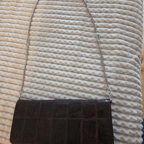 Flot bordeaux By Malene Birger taske Elanor i glat skind med pels og blåt ruskind indeni. Kan både bruges som clutch eller som lille skuldertaske, da remmen kan tages af/på. 2 lommer indeni, den ene med lynlås, og desuden plads til 12 kreditkort. Aldrig brugt, stadig plast beskyttelse på metal remmen. Navn og artikelnummer fremgår af mærkatet.