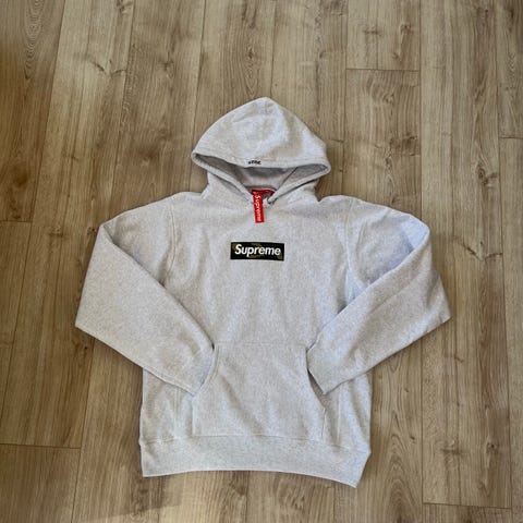 Supreme hættetrøje til herre i størrelse S. Trøjen er grå og fremstillet i bomuld. Klassisk hættedesign med snøre i hætten og kængurulomme foran. Logo på brystet samt mærketag i halsen. Velegnet som hverdags- og fritidstøj.