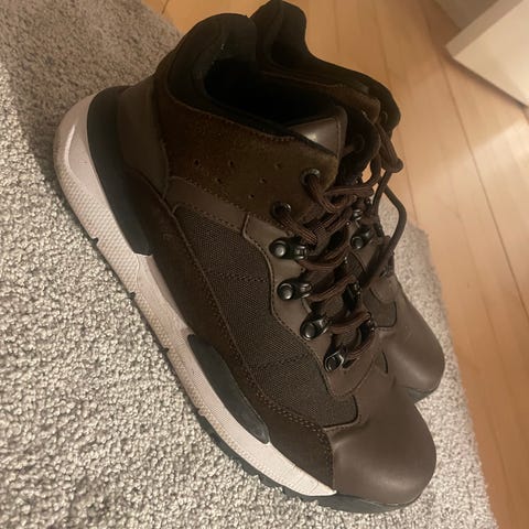 Nypris 699kr. Adidas sneakers i størrelse 45. Modellen er en høj sneaker med snørelukning og kraftig gummisål. Skoene er overvejende sorte med mørkegrå detaljer og lys brun ydersål. Overdelen er i syntetisk materiale med polstret skaft og pløs for øget komfort. Velegnet som hverdagssko og fritidssko i køligere vejr. Kan ikke passe dem- derfor sælger jeg dem.