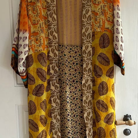 Cofur kimono syet af vintage silke fra Indien. Der følger bindebånd med, så den kan bruges på flere forskellige måder.