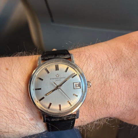 Uret har et rigtig flot og tidløst udtryk med de klassiske 12-3-6-9 markeringer, som gør modellen meget eftertragtet. Den originale urskive har udviklet en naturlig patina over tid, som giver uret masser af karakter og det rette vintage look.