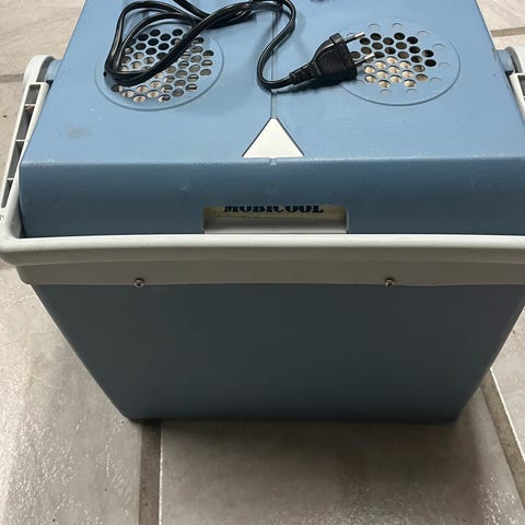 Rummelig til bil eller camping, har både el stilig stik til “cigaret stik” i bil. Kun brugt 1 gang.