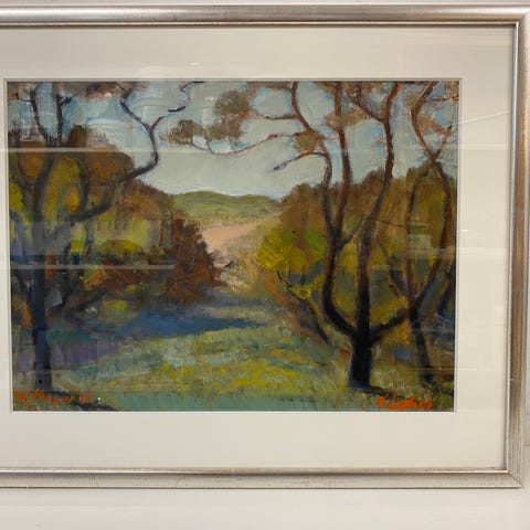 Pastelmaleri i guldramme med landskabsmotiv, hvor træer fremhæves mod en farverig himmel. Ideelt til at skabe stemning i ethvert rum.- Bemærk at mail, chat og beskeder ikke besvares, og varen skal købes på knappen "Gå til varen". Efter reservering af varen har du 10 dage til at afhente den i den butik, varen er på lager i.
