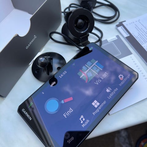Navigation til bil. Lader til bil og holder til forrude og lignende medfølger