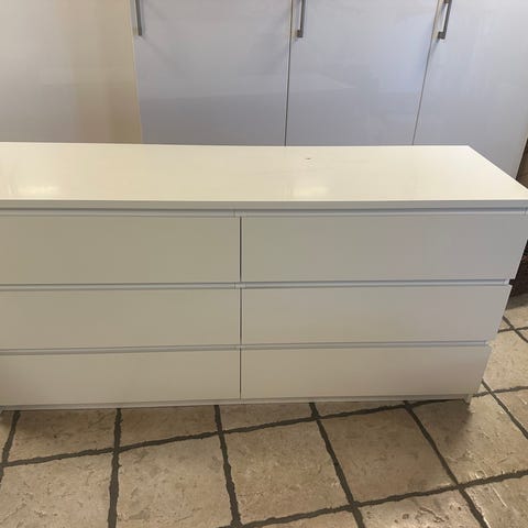 MALM Kommode 6 skuffer, hvid, 160x78 cm i pæn stand