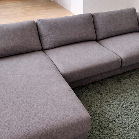 Den måler ca. 269 x 210 cm og har chaiselong, så der er god plads til at slappe af eller ligge ud.