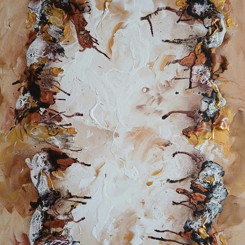 Abstrakt oliemaleri på lærred - blå/gule og hvide nuancer (Sofie Tirsbæk)