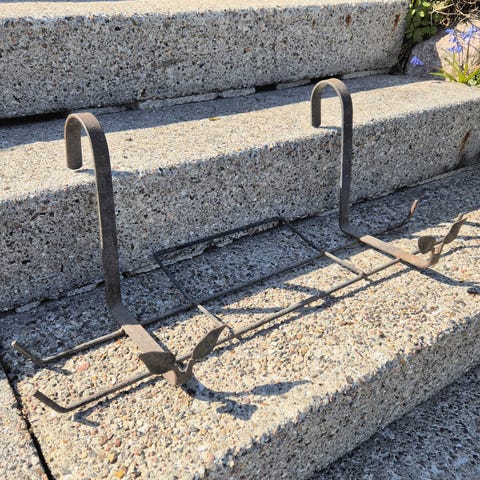 Metaltstativer til altankasser. Sættet består af fire stativer i metal, velegnet til at bære aflange altankasser eller plantekasser. Kan bruges på altan, terrasse eller i have til at hæve kasserne fra underlaget og give stabil placering. Og to plastik altankasser tilhørende metalstativer som ikke ses på billeder.