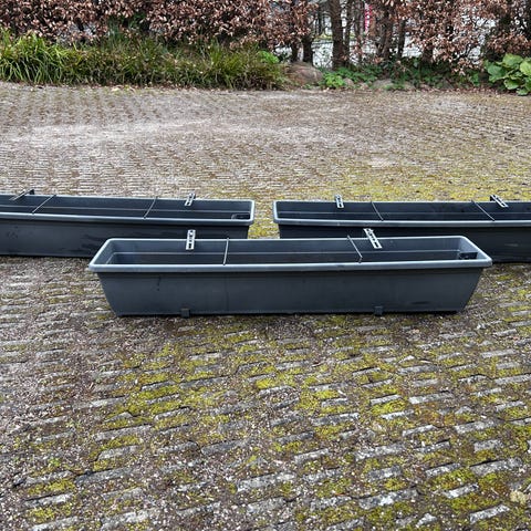 Metaltstativer til altankasser plus to plastik altankasser med jord