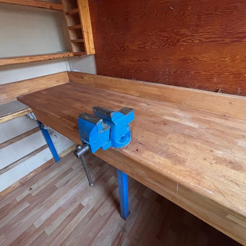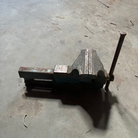 Variofix skruestik på søjle i blåmalet metal. Skruestikken er monteret på en fritstående, rund søjle med fod, som kan fastgøres til gulv eller underlag. Kæberne betjenes med håndsving, og konstruktionen er udført i kraftigt metal egnet til værkstedsbrug. Velegnet som stationær skruestik til hobby- eller professionelt værksted, hvor der ønskes en søjlemonteret løsning frem for montering på bord.