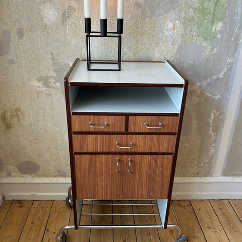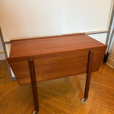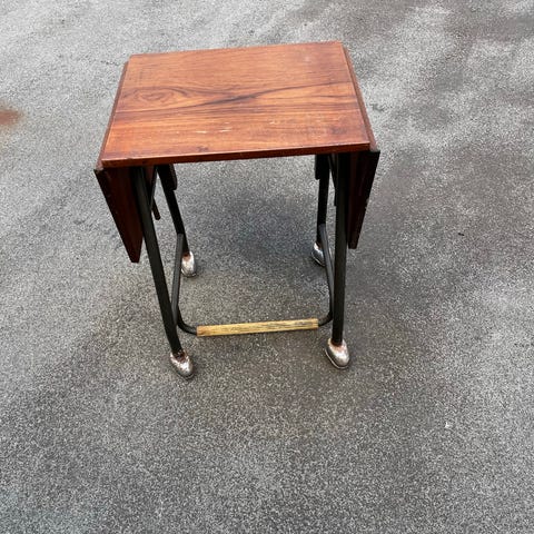 Retro teak skrivemaskinebord / arbejdsbord med klap, mål: L: 50 / 75 x D: 36 (44 ved fod) x H: 68 cm
