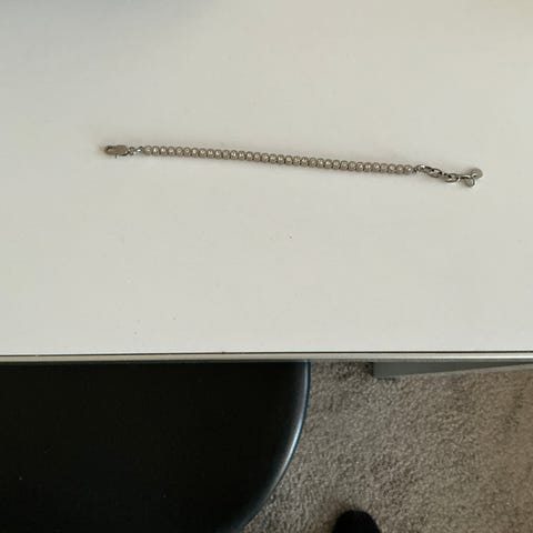 RANDERS SØLV sølv armbånd til kvinde med rektangulære led. Armbåndet er udført i 925 sterlingsølv, hvilket fremgår af stemplingen. Leddene er aflange og åbne, og mellem ledene er små klare zirkonia sten. Lukkes med karabinlås i sølv. Længde 18,5 cm