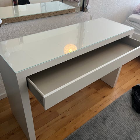 Skrivebord med en skuffe og et skab