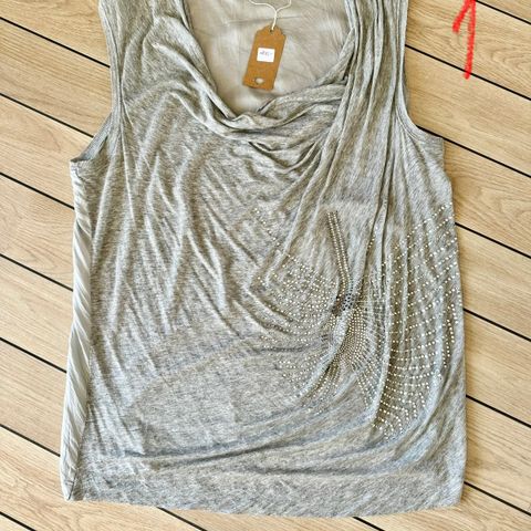 By Malene Birger bluse i viscose og silke med let v-hals og fine, gennemsigtige skuldre. En flot, blød overdel med elegant fald.