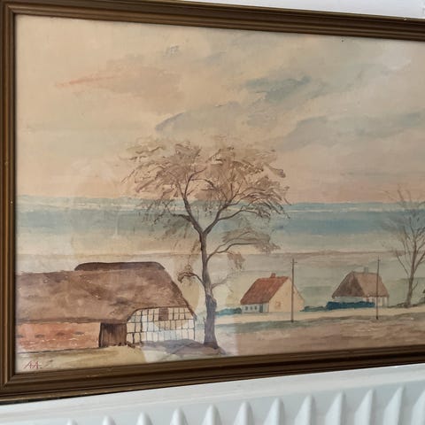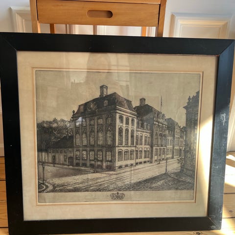 Ukendt kunstner panoramafoto bymotiv sort-hvid i træramme