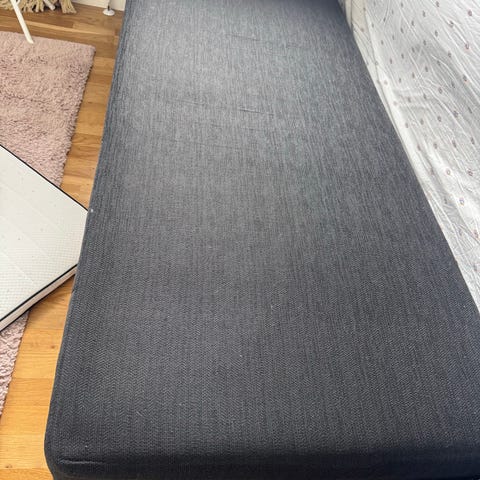 Boxmadras med topmadras i grå og hvid. Sengen består af en grå boxmadras på ben samt en hvid topmadras ovenpå. Velegnet som enkeltseng i soveværelse, gæsteværelse eller sommerhus. Ben i metal giver fri plads under sengen til rengøring eller opbevaring.