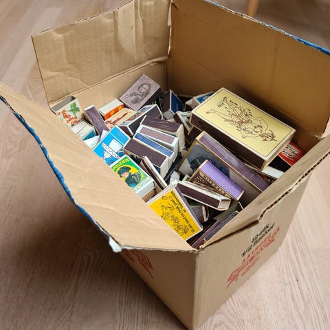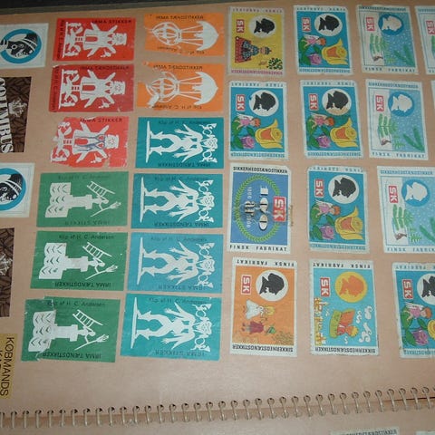 Blandet samling tændstikæsker og etiketter i album