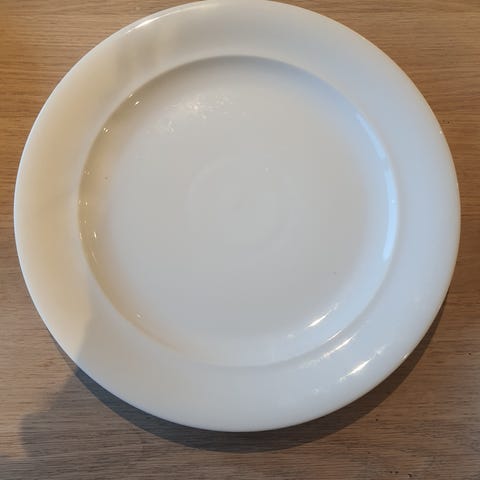IKEA tallerken i hvid. Rund tallerken i enkelt, glat design, velegnet til daglig brug i køkkenet og til servering af måltider. Materialet fremstår som glaseret keramik eller porcelæn baseret på udseendet på billederne.