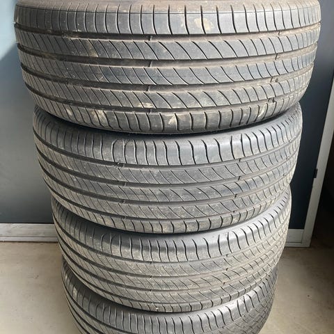 Disse 2 dæk har kørt få tusind kilometer og har en mønsterdybde på 5.5 mm. De passer ikke på mine 18" fælge.