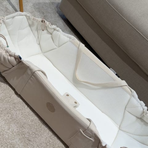 sælges da min baby er vokset ud af den. Den har været uundværlig, især i den første tid. Dog er den blevet brugt sparsomt og altid med underlag i så der er ingen pletter.