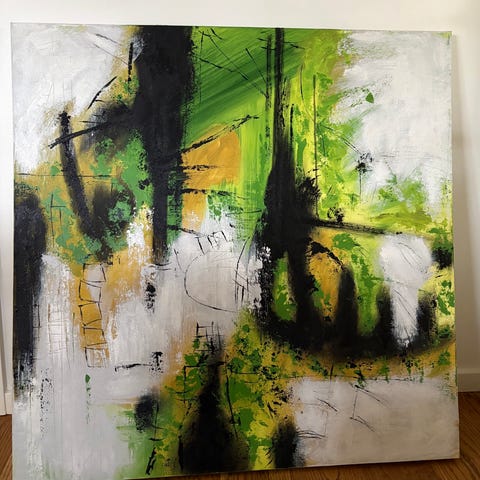 Abstrakt maleri på lærred i mørke nuancer