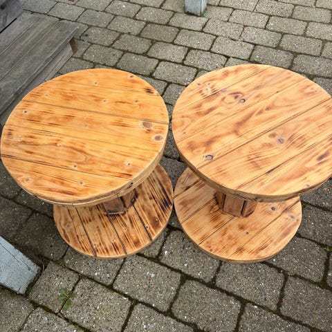 Rustikke kabeltromler i størrelse Ø 220 cm ( 2 stk ) - 230 cm - 240 cm, med højde 113 - 117 cm meter.