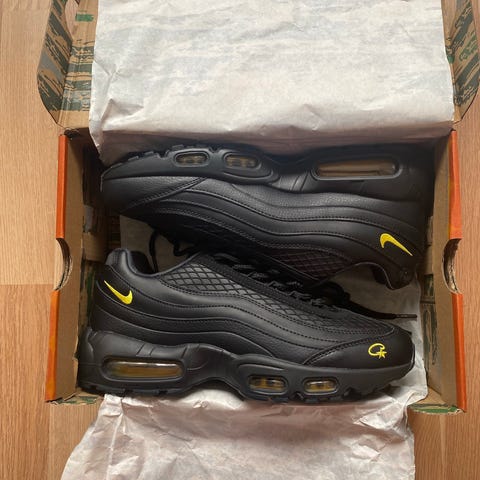 Nike Air Max sneakers i størrelse 43. Modellen har sort overdel med snørelukning og synlig Air Max-dæmpning i sålen. Overdelen er i syntetisk materiale og tekstil med gummisål. Velegnet som hverdagssko eller til let træning.