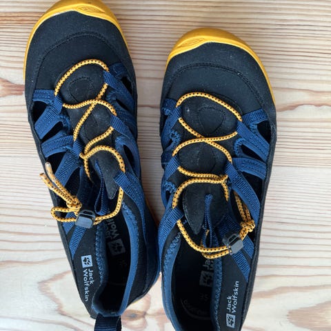 Birkenstock sandaler til børn, unisex, i størrelse 35. Sandalerne har to justerbare remme med spænder og en formstøbt fodseng med korksål. Overdelen er i blå syntetisk overflade, og ydersålen er i mønstret gummi for bedre greb. Velegnet som hverdagssandal til både inde- og udendørs brug.