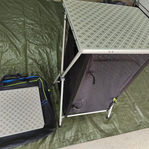 Skabet er helt i orden. Eneste lille aber dabei er at opbevaringsposen er revnet 2 steder.
