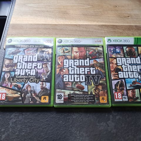 Rockstar Games Grand Theft Auto IV Xbox 360 spil. Action-adventurespil sat i den fiktive storby Liberty City. Spillet understøtter singleplayer og onlinefunktioner via Xbox Live. Aldersmærket 18+. Leveres på dvd-disk i originalt Xbox 360-cover med trykt manual/guidebook, som vist på billederne.