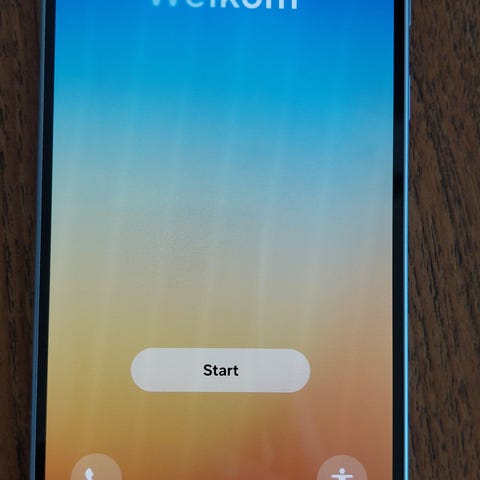 Telefonen er nulstillet og klar til ny bruger (se billede), så du kan bare sætte dit SIM-kort i og komme i gang.