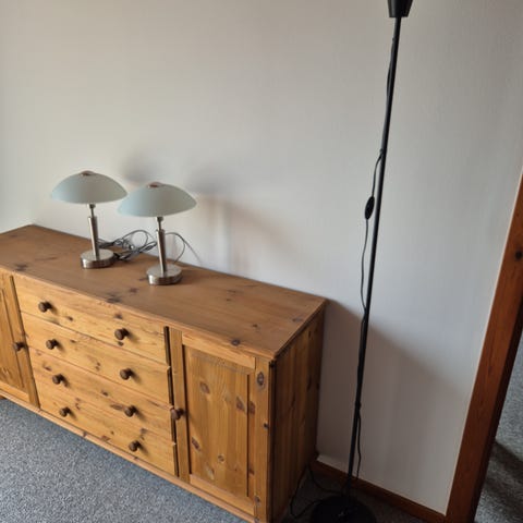 Ikke Ikea, men Darø gulvlampe. 2 separate led lamper som kan reguleres i lysstyrke. Mat hvis glas. Højde som 1.foto 145 cm