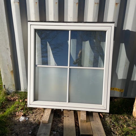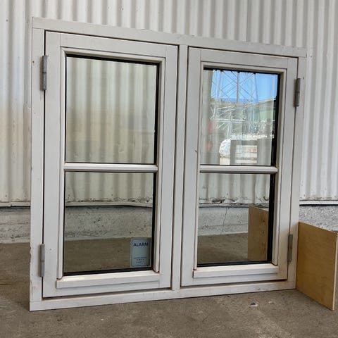Brugt STM Bondehusvindue, træ/træ, 2 lag glas, sidehængt, udluftning, mål: H86,8 B91,8 D11,7 Varenummer: 1935
