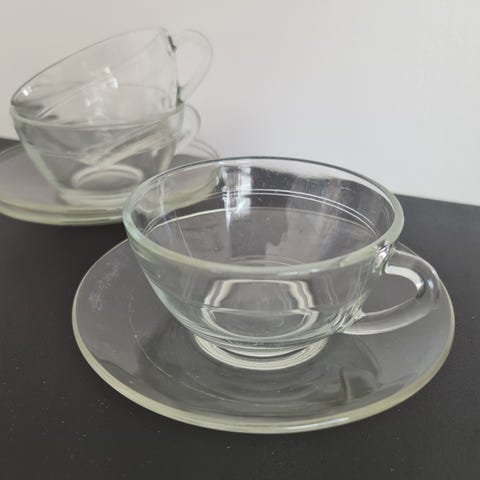 IKEA glas kopper med underkop i klart glas