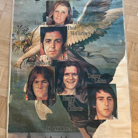 ABBA plakat med dobbeltmotiv. Den ene side viser et stort foto af to medlemmer i nærbillede, mens den anden side har flere mindre billeder og tekstfelter i forskellige farver. Egnet som vægdekoration for samlere og fans af gruppen eller som retro interiørdetalje. Plakaten er sammenfoldelig og trykt på papir.
