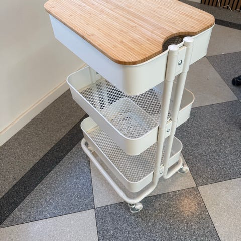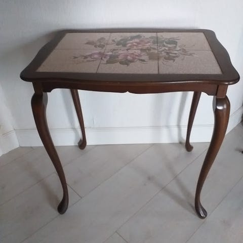 Flot lille praktisk kakkelbord med 1 skuffe og 2 trådhylder og 1 hylde i bund, H.: 71 og 37 x 37