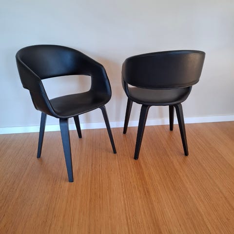 2 sorte stilrene spisebordsstole med drejefunktion og med super siddekomfort.