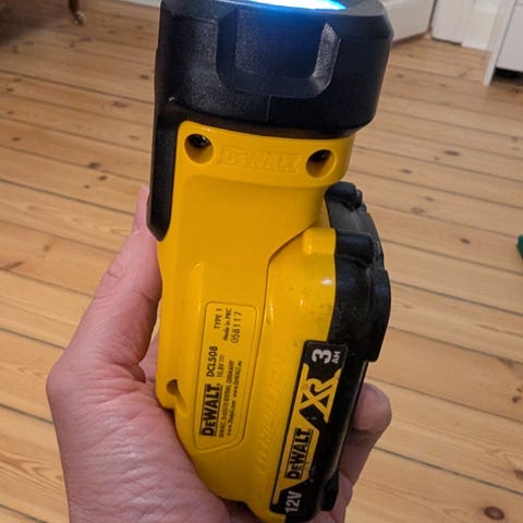 Dewalt batteriholder vægbeslag i sort plast. Beslaget er designet til montering på væg eller anden flade og passer til Dewalt 18 og 20V batterier. Holderen har skruehuller til fastgørelse og en formtilpasset indføring til batteriet, så det kan klikkes i og tages af igen. Velegnet til opbevaring og organisering af dewalt batterier i værksted, garage eller bil. Batteri medfølger ikke.