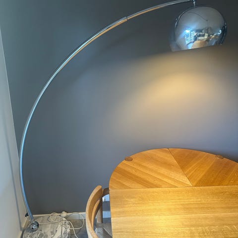 Lampen er blevet frisk gået igennem af elektriker , fået LED pærer samt nye ledning. Gulvafbryder er den originale i kromet plast. Virker som den skal.