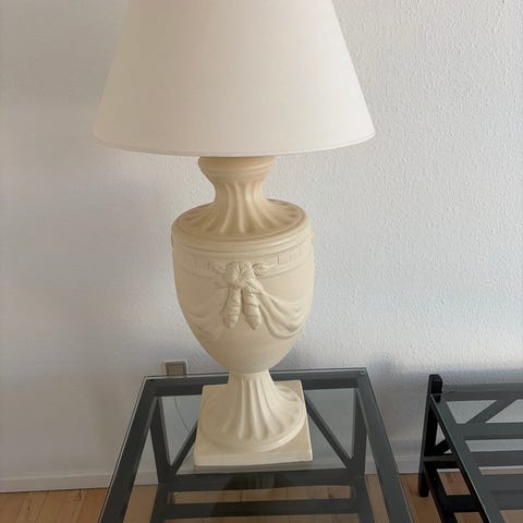 Stor bord lampe 2 stk haves 150 pr stk. Der skal nye lampeskærme på og evt nye ledninger, da de er blevet misfarvet med tiden
