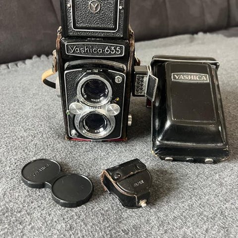 Smukt Yashica 12 mellemformatskamera- helt fantastisk tlr kamera i top stand incl funktion. - billeder taler for sig selv. Lysmåler er spot on - testet og brugt med et frisk lr 44 ( sidder i og ja den afviger en my da det , som vi alle ved, ikke er muligt og købe et 1.35 v mere men intet af betyning for exponering) . Tider passer både hurtige og langsomme. Laver fantastiske 6x6 billeder på 120 film.