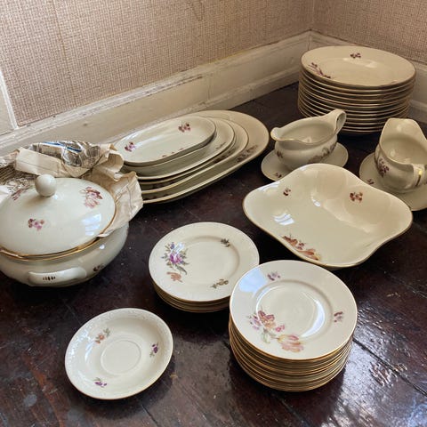 Porcelæn, Spisestel , Tjekkisk, Blomstret spisestel til 4 personer incl. diverse skåle og fade.