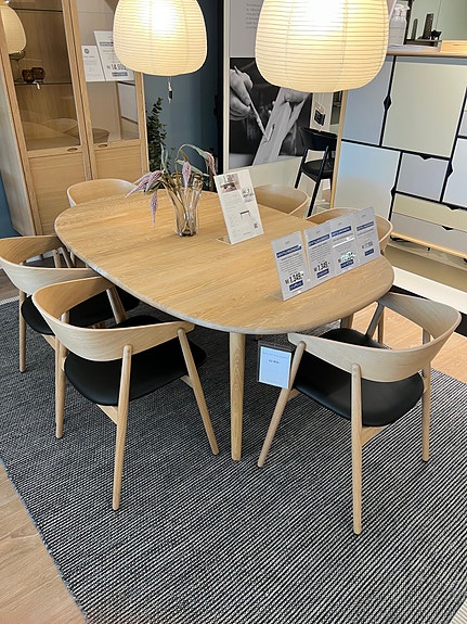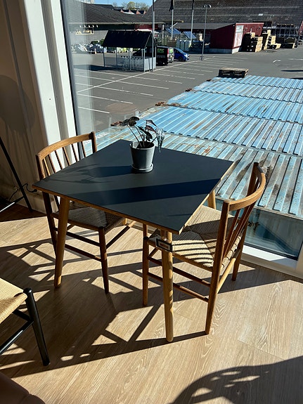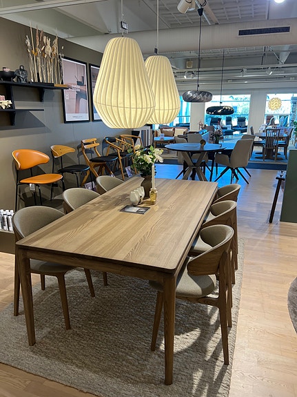 Flotte og elegante spisebordsstole i Sirka Grey med natur flet sæde.