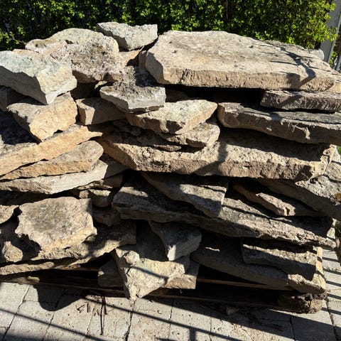 40-45m2 Natursten fliser velegnet til belægning i have, gangstier, indkørsel eller terrasse. Overfladen er rå og naturlig, hvilket giver et mere organisk udtryk i udemiljøer. Størrelser og tykkelser varierer fra sten til sten, hvilket gør dem egnede til mønstrede eller mere rustikke belægninger.