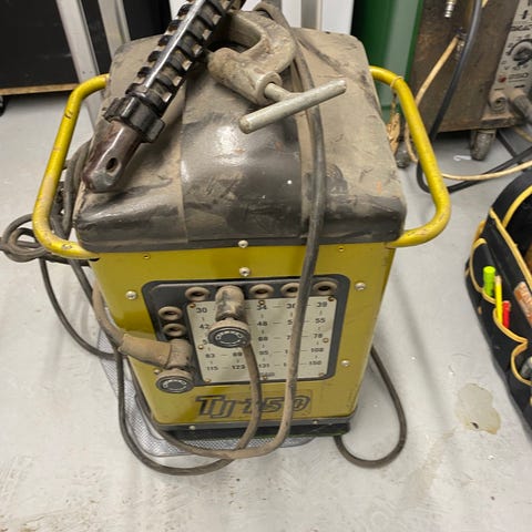 Elektra Beckum SB200CT Turbo svejseapparat. Bærebart svejseapparat med håndtag på toppen og tilsluttede kabler. Frontpanel med regulering og tilslutninger til svejsekabler. Velegnet til almindelige svejseopgaver i værksted eller garage, hvor der er behov for et kompakt apparat med justerbare indstillinger. Kan tilsluttes enten 220 eller 380 Volt.