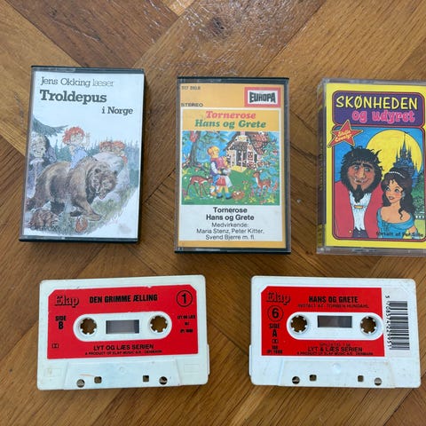 Forskellige børne-lydbånd på kassettebånd. Motiver og titler omfatter blandt andet kendte børnefigurer og historier. Egnet til afspilning på kassettebåndoptager og til samlere af ældre børne-lydbånd.