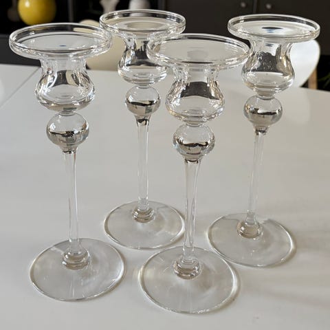 Holmegaard Opera Lysestager af Michael Bang i samarbejde med Royal Copenhagen. Lysestagerne er med bred lysepibe i 3 højder, henholdsvis 17 cm, 23,7 cm og 30 cm. De er alle 10,7 cm i diamater.