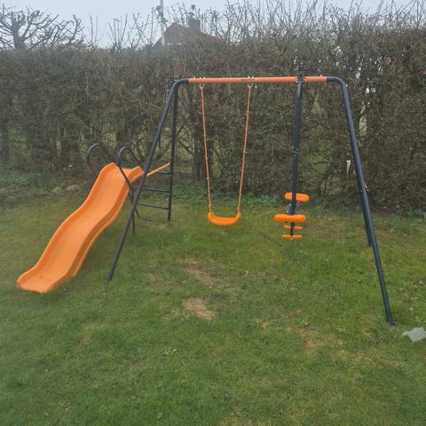 Brugt gyngestativ i metal. Kan ikke skilles ad. Virker fint.