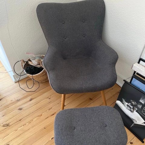 To lysegrå lænestole, kun brugt ganske lidt. Passer til mindre stue.